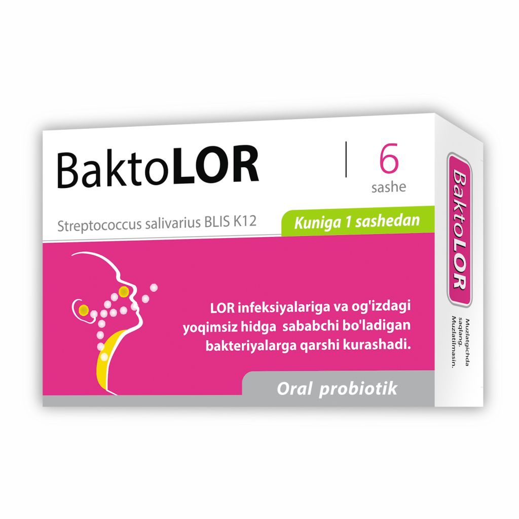 • Основным активным ингредиентом Бактолора является специфичный штамм пробиотика для ротовой полости и верхних дыхательных путей — Streptococcussalivarius K12, также называемый BLIS K12.